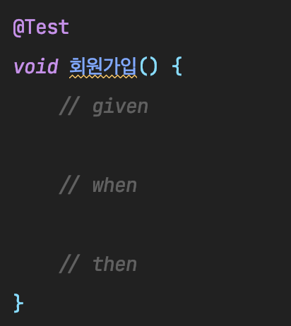 보통 아래처럼 given, when, then 형식으로 작성을 많이한다.