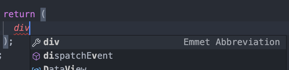 VSCode에서 리액트로 개발을 하게 되면 JSX 문법을 사용할 때 다음과 같이 자동완성이 되지 않는 문제가 있다.
