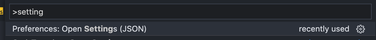 F1 을 눌러 setting 을 입력하고 Open Settings (JSON) 에 들어간 후