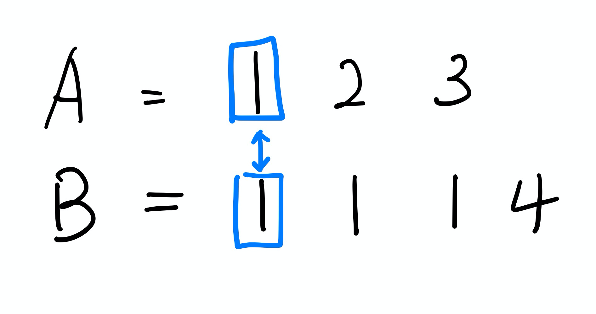 맨 처음 값을 비교하여 값이 같다면 교집합에 1을 추가해준다.